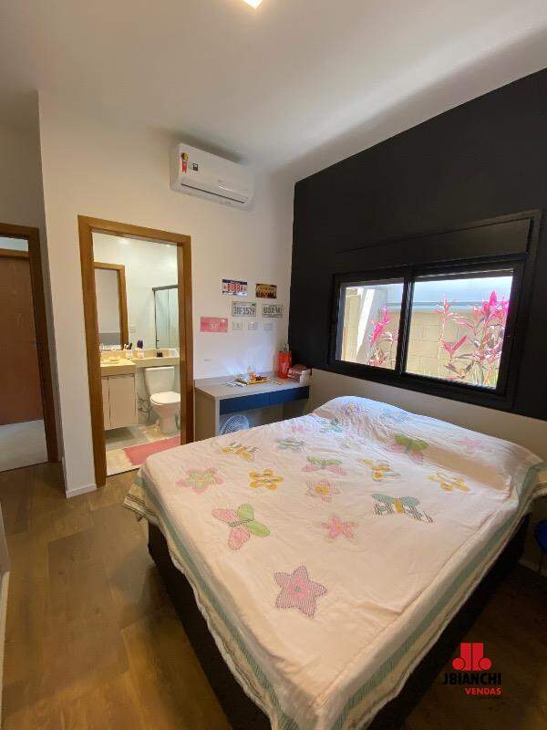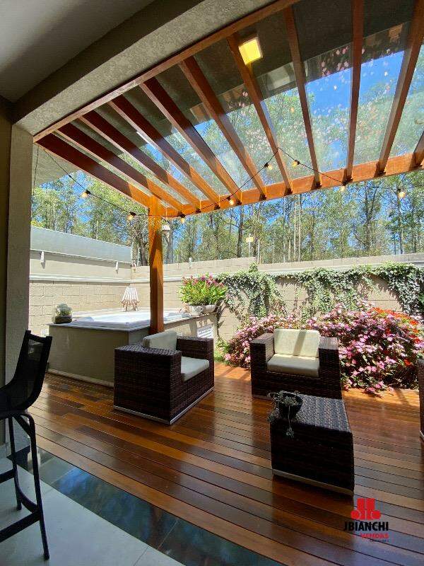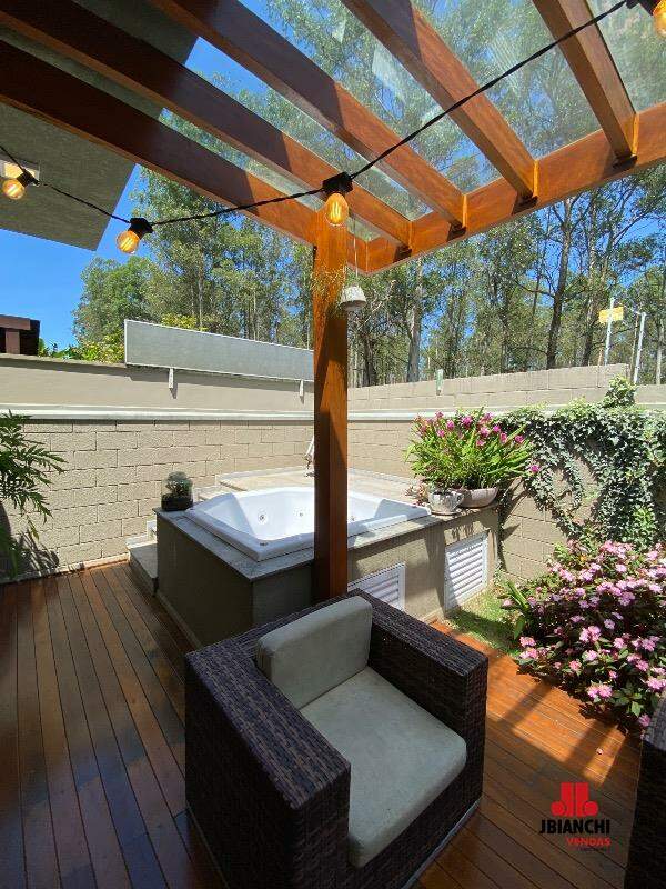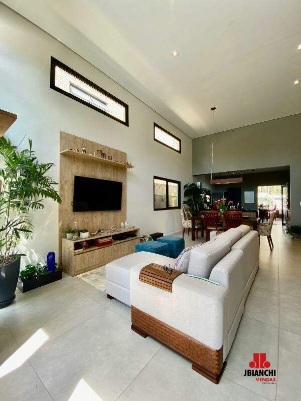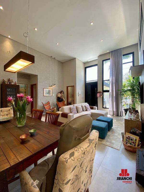 Essa casa térrea mobiliada é encantadora, possui 175m de área construída com conceito aberto, 3 suites, pé direito duplo com janelões envidraçados, bem arejada e iluminada, lavabo, cozinha integrada à sala, planejados em todos os ambientes, closet na suíte do casal, esquadrias de alumínio preto, lavanderia coberta, quintal com jacuzzi, espaço gourmet, um lindo jardim e 2 vagas de garagem cobertas.