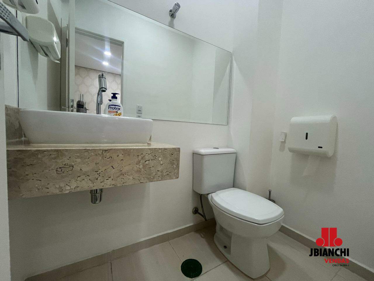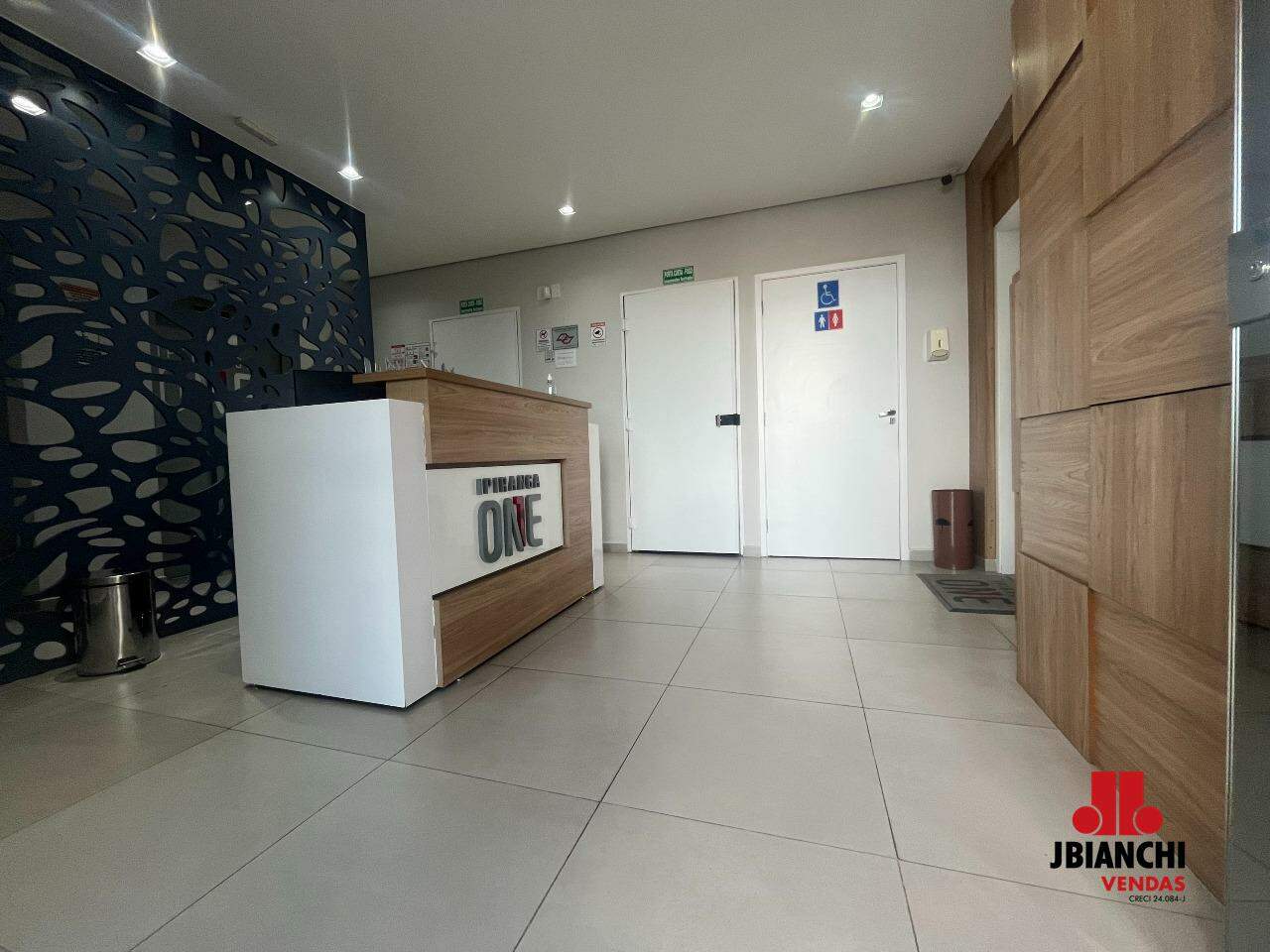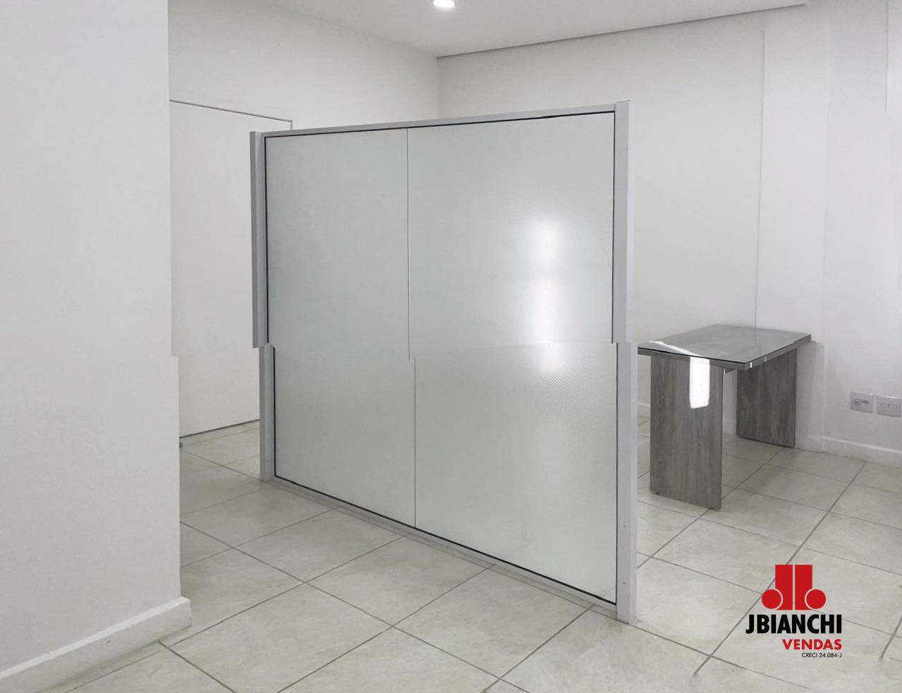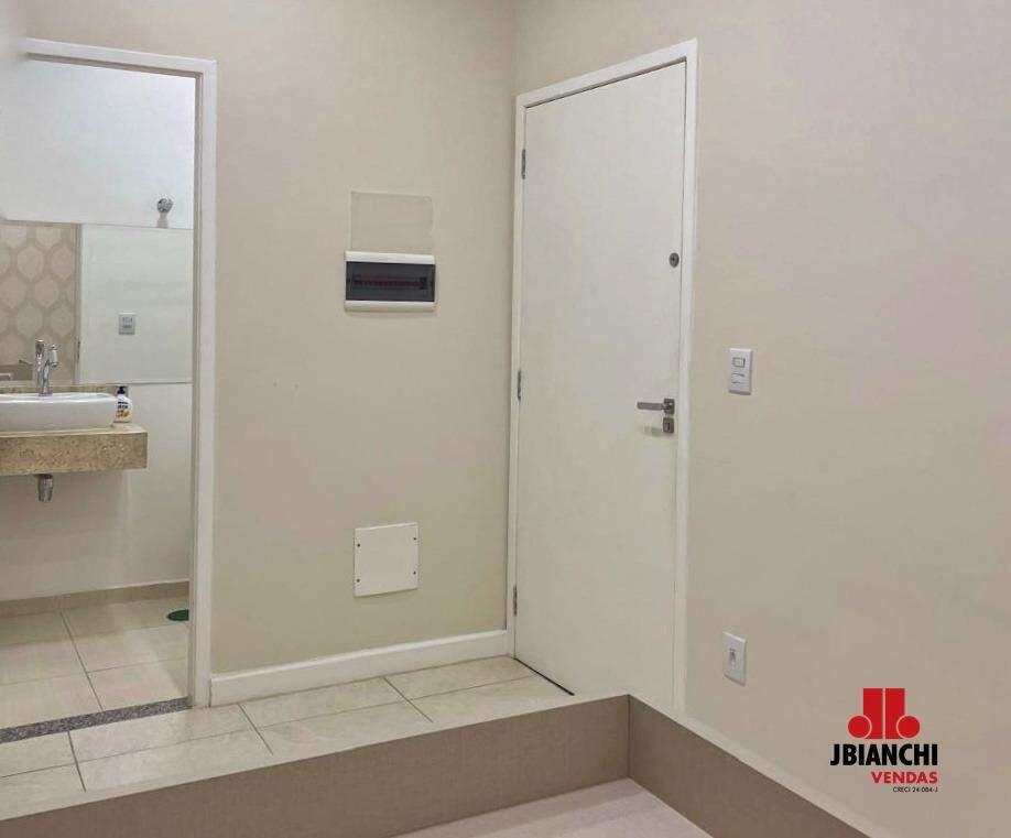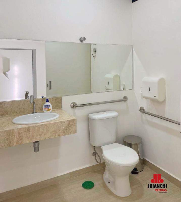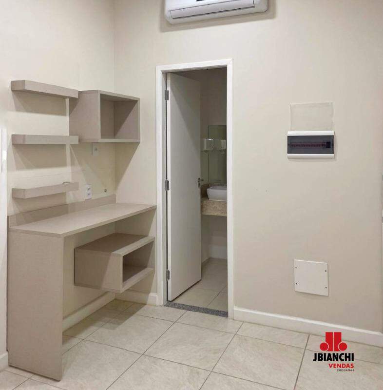 Sala com 38 M², 2 banheiros, 1 vaga de garagem e ar condicionado.
