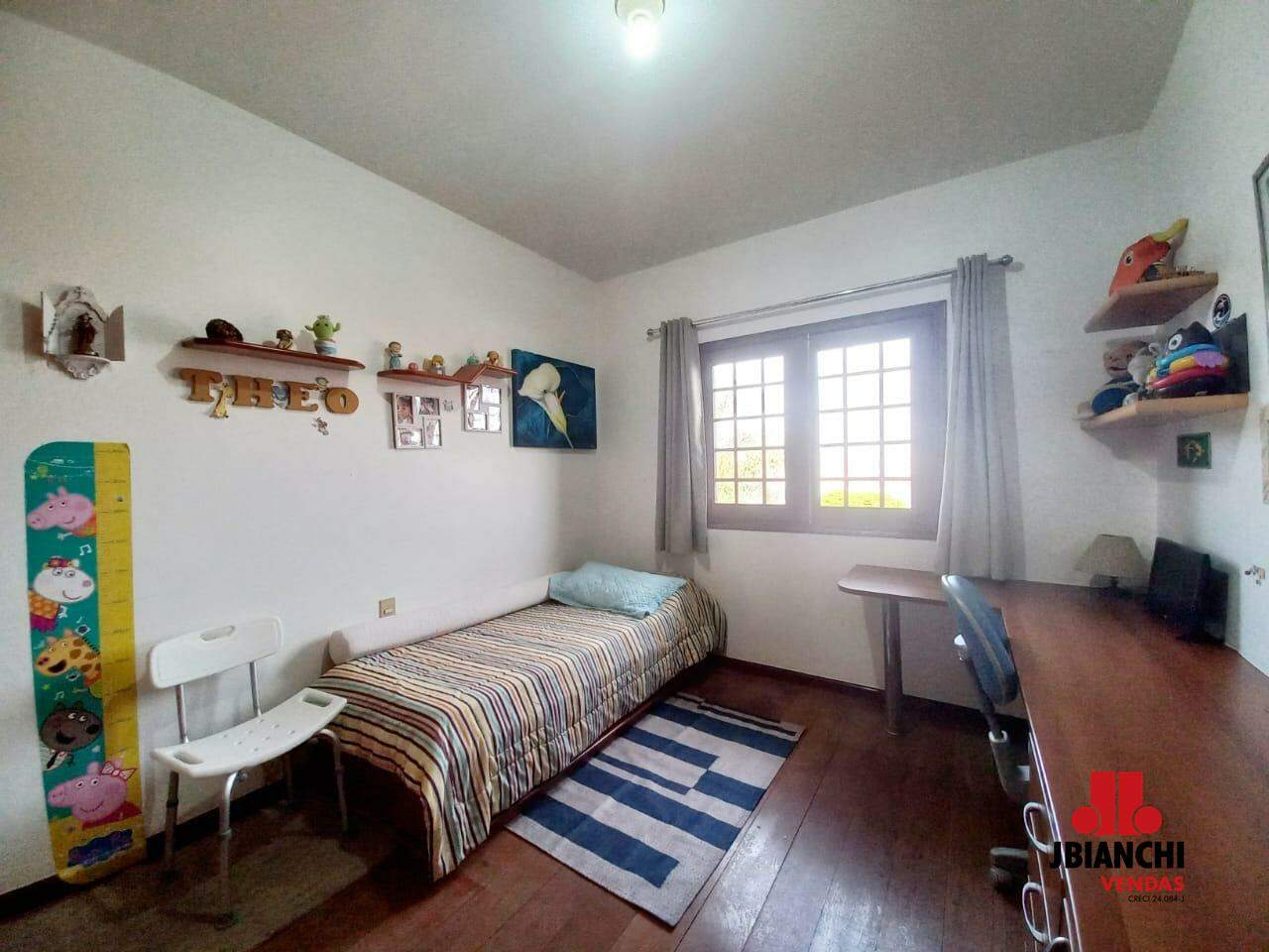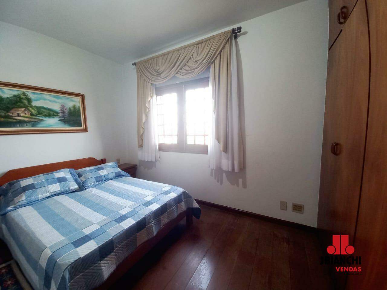 No outro piso conta com dois dormitórios e uma suíte, todos em piso de madeira, dando um ar de elegância.