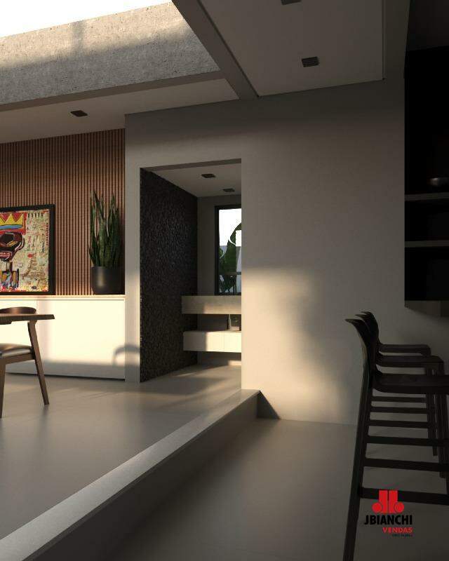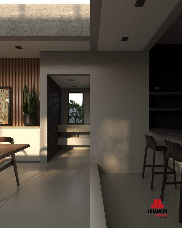 No piso térreo a casa possui espaço amplo e conceito aberto, sala de jantar, sala de estar, cozinha, cozinha gourmet, piscina e jardim, unem esse espaço de convivência.