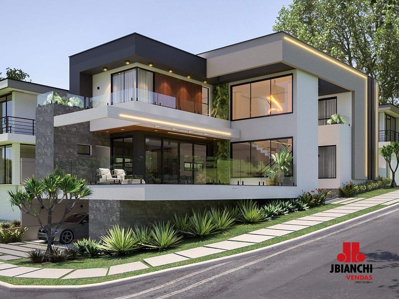 Informações adicionais: Depósito, área para possível brinquedoteca, salão de jogos ou cinema, pé direito duplo, despensa, energia fotovoltaica e pontos de ar condicionado em todas as suítes, escritório e sala de estar.